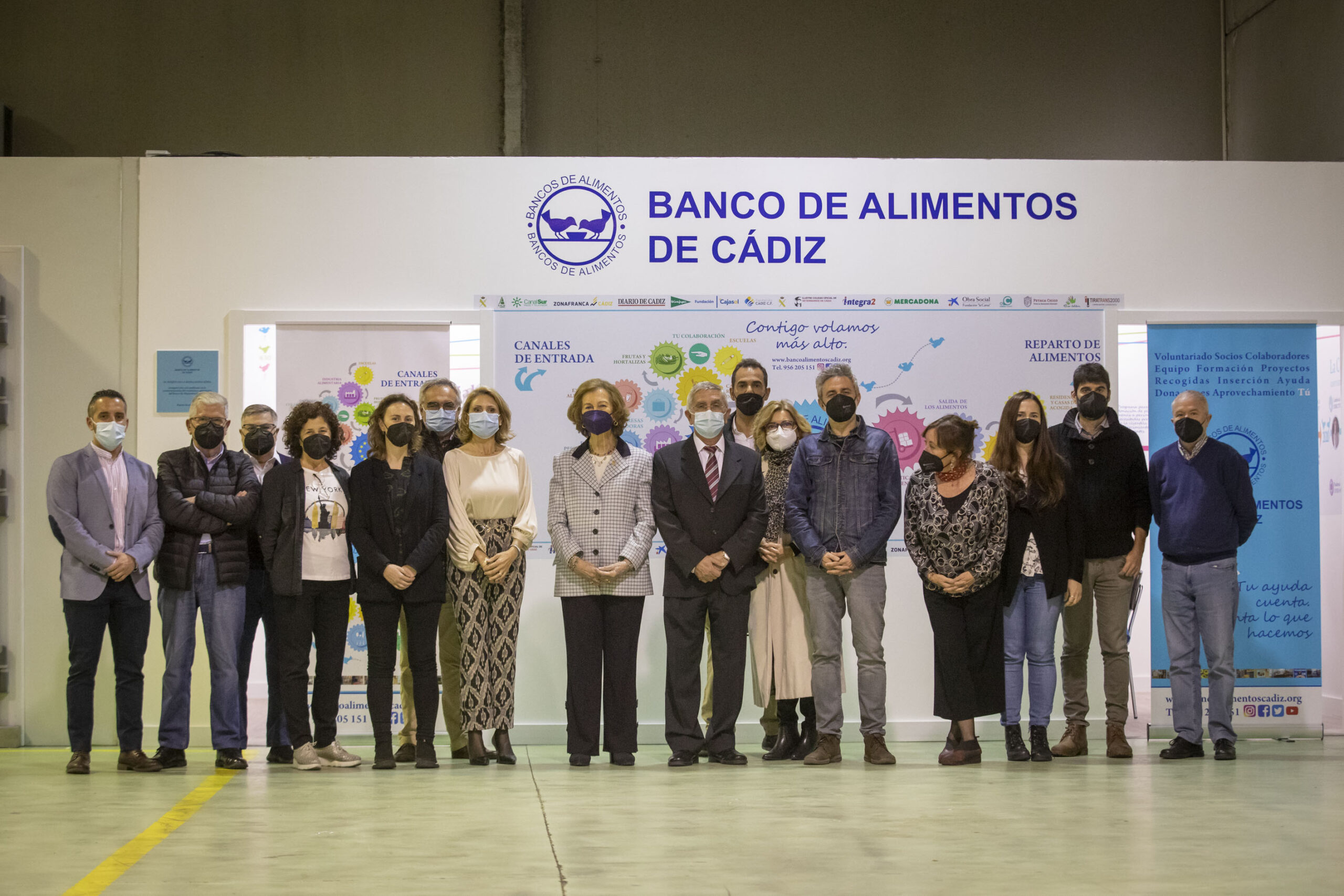 Esta visita se inscribe, a iniciativa de S.M. la Reina Doña Sofía, en el marco de colaboración que Su Fundación mantiene desde el año 2012 con los Bancos de Alimentos de toda España, con el fin de conocer sus necesidades y posibles vías de ayuda. A través de esta colaboración, una de las áreas a la que la Fundación de S.M. dedica un mayor esfuerzo, la Fundación Reina Sofía ha proporcionado al conjunto de los Bancos de Alimentos más de un millón de litros de zumo y leche, y miles de kilogramos de alimentos infantiles (leche en polvo, papillas, purés), así como se han mejorado instalaciones, vehículos y equipamiento, especialmente los equipos de frío necesarios para la conservación y distribución de alimentos frescos perecederos. Con origen en la distribución de estas ayudas de la Fundación, el Banco de Alimentos de Cádiz recibe anualmente alimentos básicos indispensables en la alimentación de sus beneficiarios.